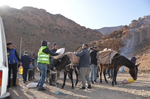 Cette opération se poursuivra dans diverses régions (Midelt, Errachidia,Tiznit,Kasba Tadla, Kénitra) avec la distribution des colis alimentaires, vêtements et couvertures pour plus de 800 familles.