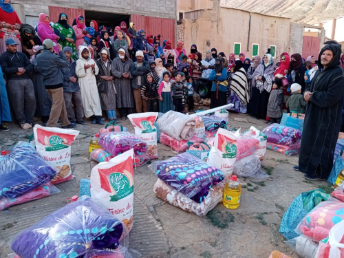 Cette opération se poursuivra dans diverses régions (Midelt, Errachidia,Tiznit,Kasba Tadla, Kénitra) avec la distribution des colis alimentaires, vêtements et couvertures pour plus de 800 familles.